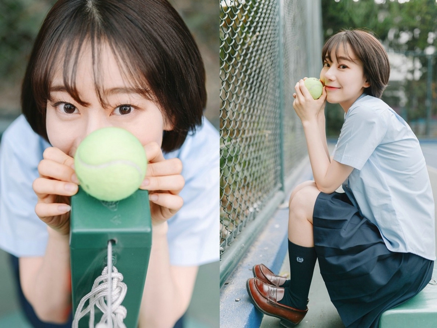清新阳光皮肤白嫩短发清纯学生妹校园甜美俏皮活力唯美写真